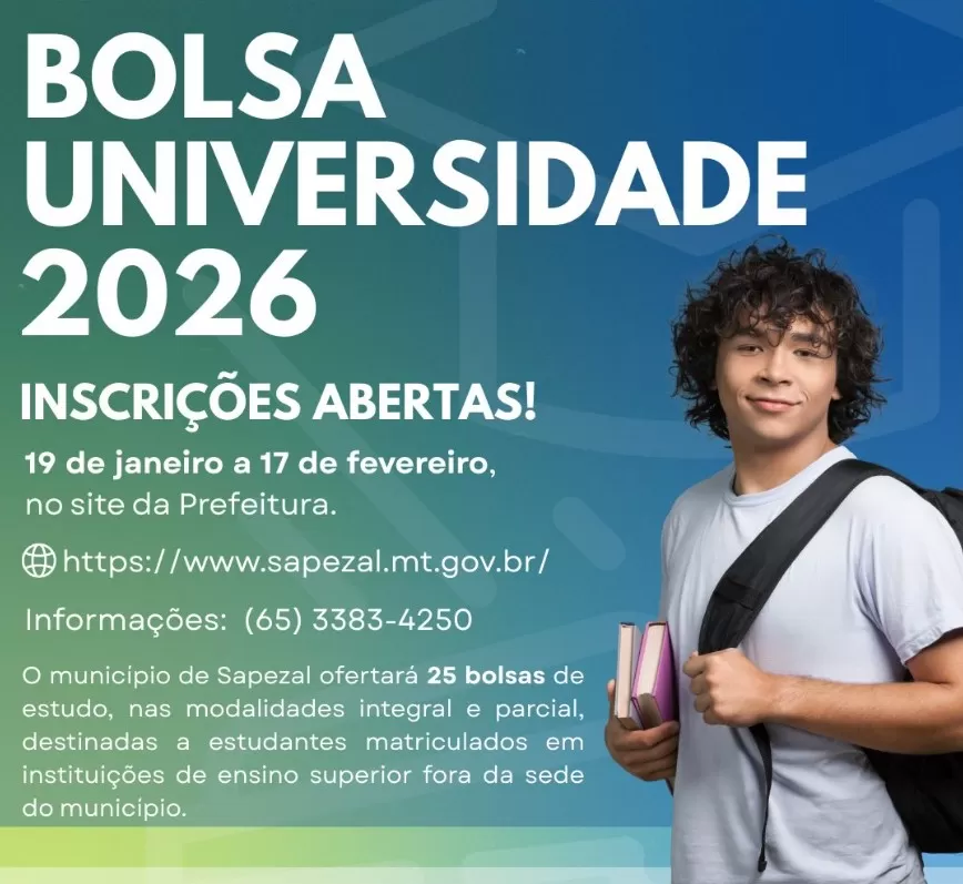 Como parte dessa política educacional, a Prefeitura de Sapezal vai ofertar 25 bolsas de estudo, nas modalidades integral e parcial, destinadas a estudantes matriculados em instituições de ensino superior fora da sede do município. A iniciativa amplia as oportunidades para quem sonha em continuar os estudos e busca qualificação profissional.